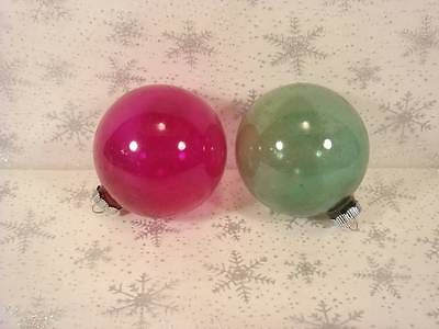 LOT 2 VINTAGE UNSILVERED VERY LARGE GREEN & PINK SHINY BRITE CHRISTMAS ORNAMENTS