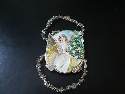 Title (ebay affiliate link): ANTIQUE PAPER SCRAP VICTORIAN GIRL ANGEL WITH CHRISTMAS TREE CHRISTMAS ORNAMENT