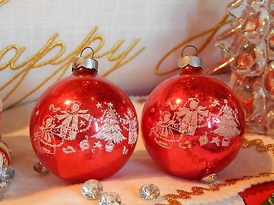 Vintage Stencil Scene Mica Angels Shiny Brite Mercury Glass Christmas Ornaments
