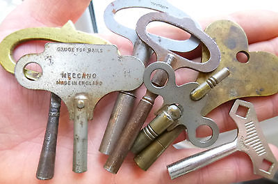 MIXED LOT VINTAGE ANTIQUE WATCH CLOCK KEYS VARIOUS SIZES ONE MECCANO KEY #6 NR