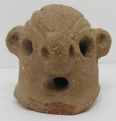 Pre Columbian Mayan Carved Terracota Carved Figural Head Flute Roatan Honduras
