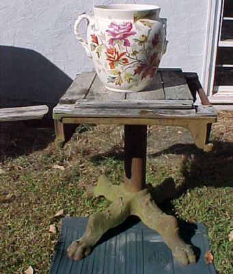 Title (ebay affiliate link): ORNATE VINTAGE CAST IRON TABLE WITH SWING OUT ARM