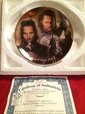 THE LORD OF THE RINGS CALENDAR PLATE AUGUST 51A BRADFORD EXCHANGE PLATE W/COA