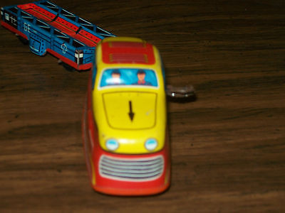 VINTAGE TIN LITHO WIND UP UNMARKED TROLLY CAR BUS TRAIN PULLING CAR.