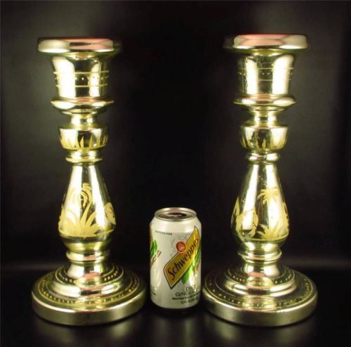 Title (ebay affiliate link): Pair of Antique Mercury Glass 13.5" Candlesticks Enameled Decoration (##)