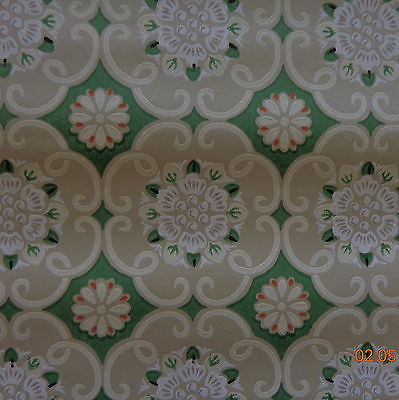 Vintage silkscreened 1940's Barnes Wallpaper Company Union Made 2 dbl rolls