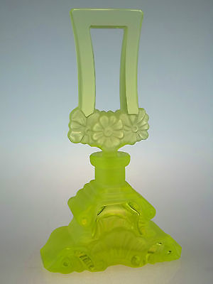 Bohemian Czech Art Deco Uranium Crystal Cut Signed Perfume Bottle