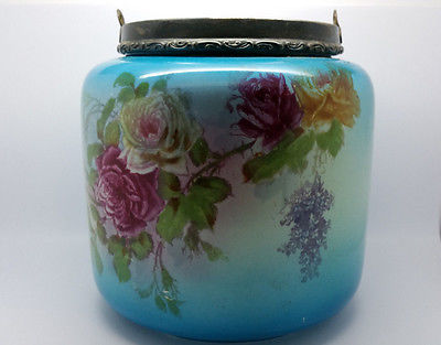 Antique Franz Anton Mehlem Floral Biscuit Jar 6"