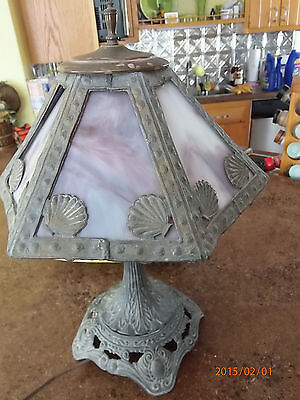 ANTIQUE 6-SIDED PANEL LAMP - PURPLE SLAG GLASS