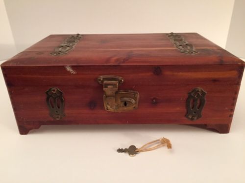 Title (ebay affiliate link): Antique Wooden Box With Amazing Dovetail And Brass Lock Made In The U.S.A.