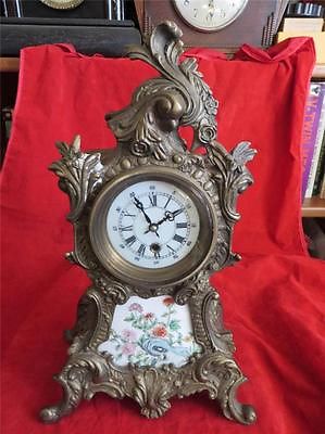 Antique Bronze Brass Porcelain Mantle Clock
