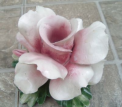 Title (ebay affiliate link): ITALIAN CAPODIMONTE SIGNED LARGE PINK TEA ROSE CANDLE HOLDER "LOVELY"