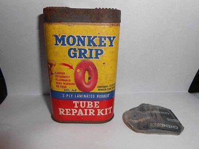 Title (ebay affiliate link): VINTAGE MONKEY GRIP TUBE REPAIR CARDBOARD CONTAINER-TIN LID & BASE