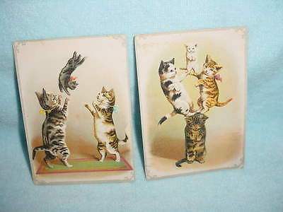 ACROBATIC CATS - 2 VICTORIAN TRADE CARDS - 1885
