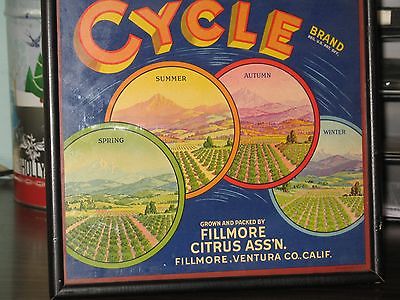 California Oranges Crate Label. Fillmore Citrus, Framed old 1920'S "CYCLE BRAND