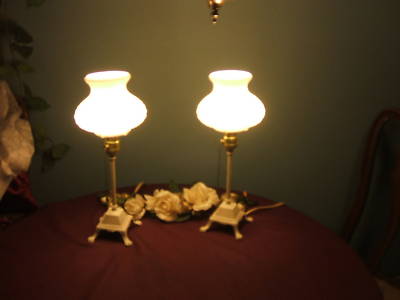Vintage Antique bedroom Lamps Metal Hobnail milkglass