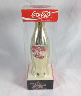Title (ebay affiliate link): Coca-Cola Commemorative Gold Bottle 1995 Original Christmas Santa Claus Artwork