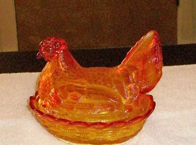 Title (ebay affiliate link): amber depression carnival glass chicken candy dish
