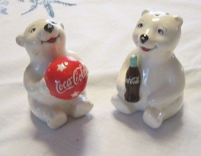 Title (ebay affiliate link): COCA-COLA CERAMIC POLAR BEAR CUBS SALT PEPPER SHAKERS W/BEACH BALL & BOTTLE COKE