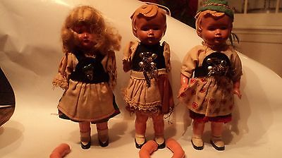 Three Vintage Dolls, over 50 yrs. old 7 inch