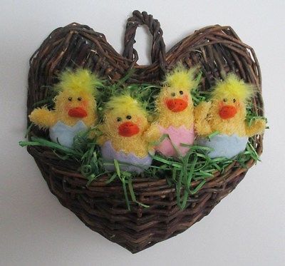 Title (ebay affiliate link): PRIMITIVE SET OF 4 NEWBORN CHICKS YOUR CHOICE GRUNGY OR NOT IN A WICKER POCKET!