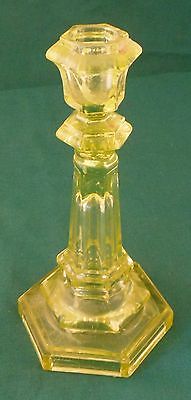 Great Early American Antique Sandwich Molded Canary Flint Glass Candlestick