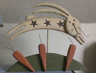 PRIMTIVE FOLK ART EASTER BUNNY SHELF SITTER
