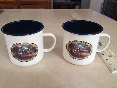 Two (2) Hallmark Thomas Kinkade Decorative Enamel Coffee Cups