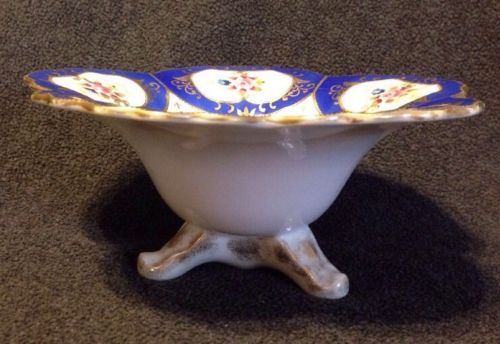 Title (ebay affiliate link): Vintage L&M Inc.Triple Footed Hand Painted Bowl White, blue & gold - NR $0.99
