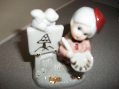 VINTAGE CERAMIC FIGURINE - LITTLE FRENCH CHILD ARTIST - PAINTING - COTC - KOREA