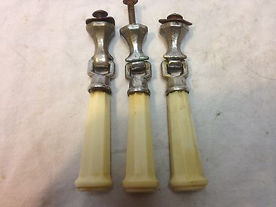 Title (ebay affiliate link): 3 ANTIQUE VINTAGE BRASS FURNITURE DROP PULL HANDLE PARTS