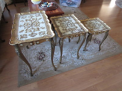 Title (ebay affiliate link): 3 Vintage ITALIAN Florentine NESTING TABLES Set Gold Gilt French Floral Design