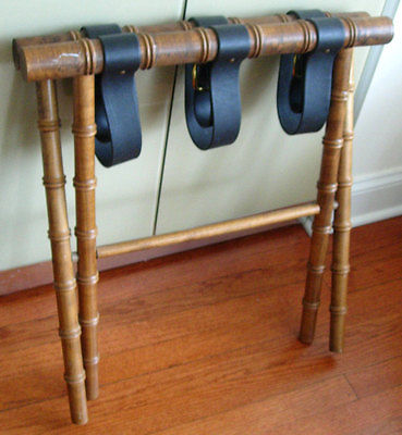 Title (ebay affiliate link): EARLY 20th C - Mahogany Leather Brass Luggage Suitcase Rack - Bamboo Design