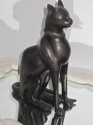 Vintage Cast Bronze Egyptian Siamese Cat Figurine Doorstop Bookend