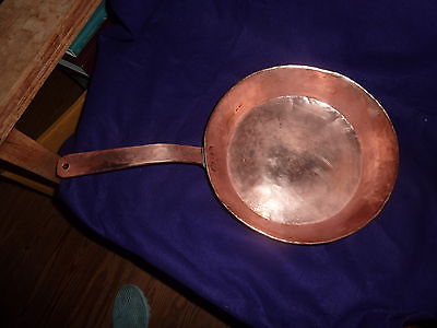 Solid copper pan -antique ,hand hammered, rolled edge- primitive/French