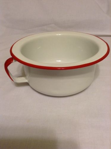 Vintage Child's Chamber Pot / Enamel Ware White With Red Trim
