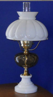 VINTAGE HURRICANE LAMP with MILK-GLASS GLOBE - Exc Cond