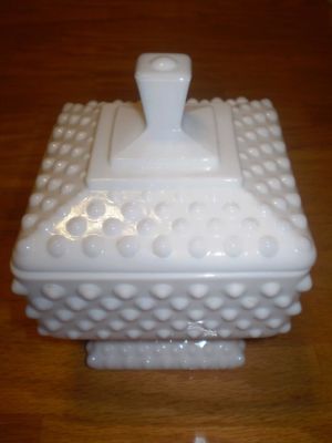 FENTON HOBNAIL MILK GLASS CANDY DISH WITH LID