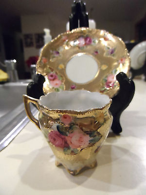 Title (ebay affiliate link): Vintage 2" Footed Demitasse Cup & Saucer w/Gold Gilt & Flowers - Unknown