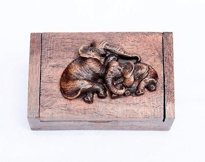 NEW WOODEN TEAK BOX CASE THAI HANDMADE ELEPHANTS HOT DECORATED FREE SHIPPING