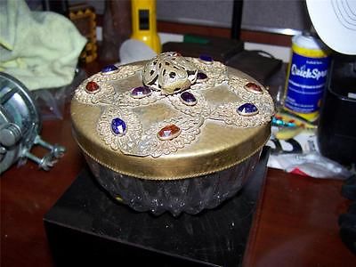 UNIQUE ANTIQUE HAND HAMMERED BRASS GEMSTONE COVERED GLASS BOWL
