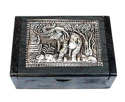 NEW WOODEN BOX THAI HANDMADE ELEPHANTS ALUMINUM DECORATED FREE SHIPPING