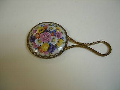 Antique Vintage Hand Mirror Hand Painted Floral Brass Handle
