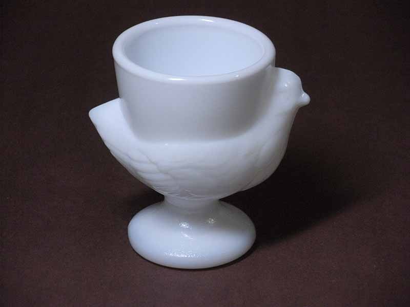 VINTAGE MILK GLASS FRANCE CHICKEN EGG CUP *DETAILED*