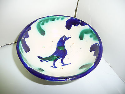 Antique 19th Century SPANISH Tin Glaze Chinese Paste Pottery Rice BOWL with BIRD