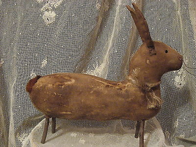Primitive Early Rabbit Doll Extra Grungy Muslin Spring Easter Shelf Tuck Decor