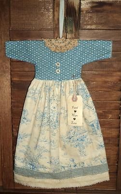 GRUNGY~PRIMITIVE WALL~CUPBOARD~DOLL DRESS BLUE HEARTS &TOILE CHILDREN FOLK DECOR