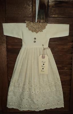 GRUNGY~PRIMITIVE WALL~CUPBOARD~DOLL DRESS ECRU EMBROIDERY FLORAL FOLK ART DECOR