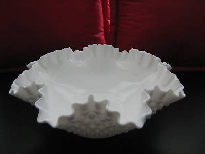 LARGE VINTAGE FENTON White Milk Glass Hobnail Bowl EXCL