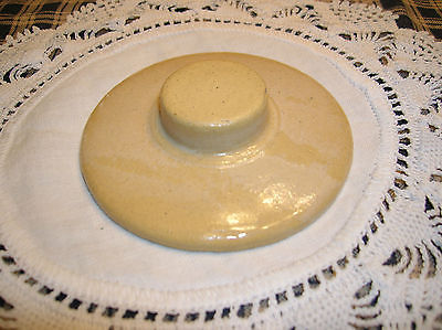 VINTAGE STONEWARE CROCK LID SALT GLAZE SNUFF JAR WEIR BUTTON TOP HANDLE